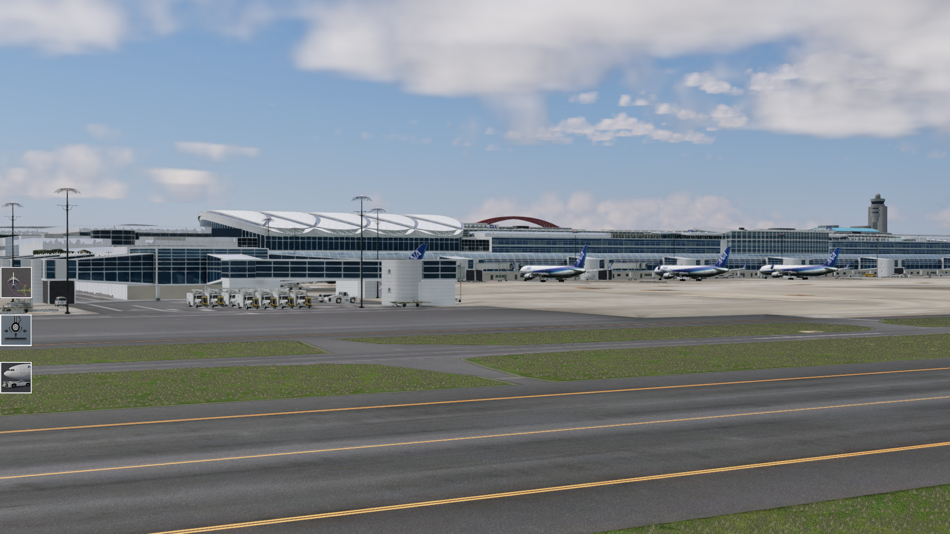 Haneda se caractérise également par des rotations rapides des compagnies aériennes nationales. Les avions effectuent fréquemment plusieurs segments de secteurs courts par jour, ce qui nécessite un placement précis des portes, un espacement serré des aires de trafic et un séquençage efficace des refoulements et des roulages. Pour les utilisateurs de X-Plane qui suivent des horaires réels, même des inexactitudes mineures dans les marquages ou la disposition peuvent rapidement affecter l’immersion et le réalisme opérationnel.