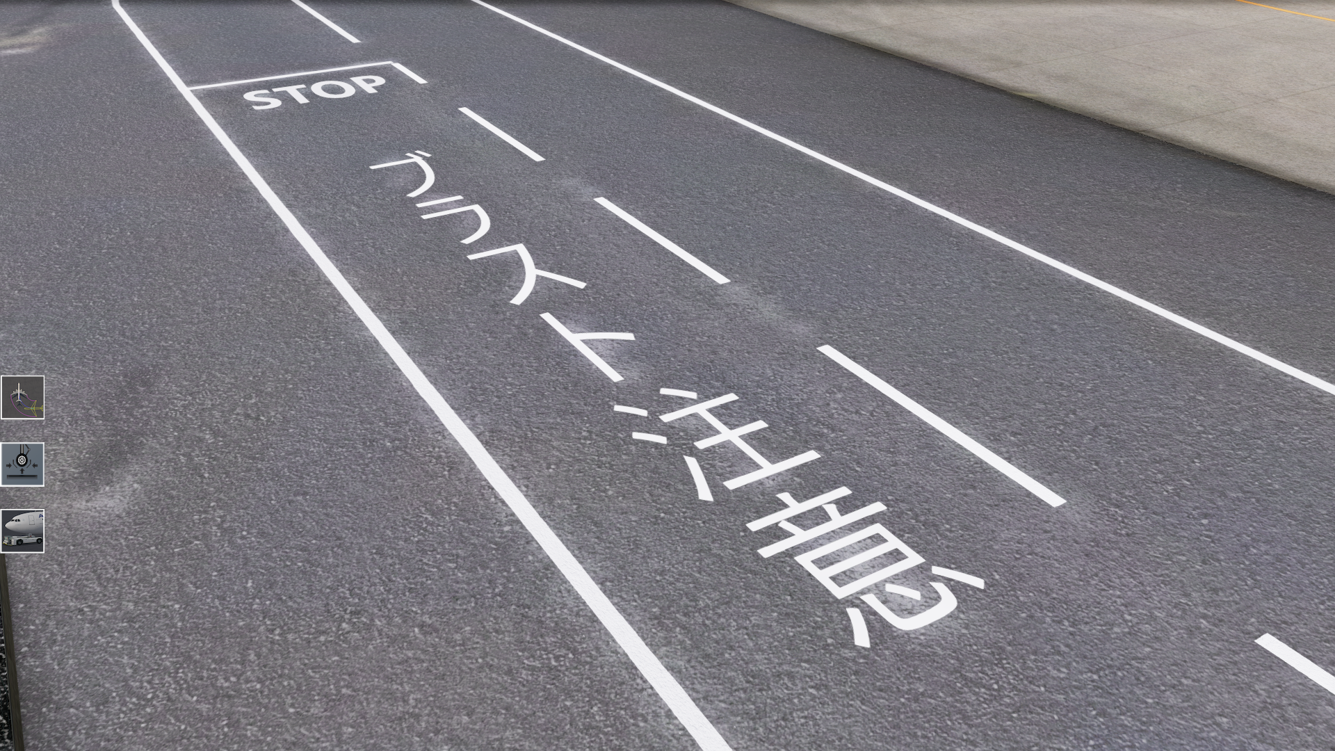 Début décembre, les principales infrastructures côté piste étaient déjà en place, notamment la géométrie des pistes et des voies de circulation, les couches de chaussée et les marquages primaires. Le travail restant s’est concentré sur le raffinement du maillage, le marquage des terminaux, les zones côté ville et les détails environnementaux tels que la saleté, les textures grunge, l’éclairage et l’encombrement du sol. Ces éléments sont particulièrement importants à Haneda en raison de la densité de l’aire de trafic, des transitions d’élévation et de la proximité du terminal.