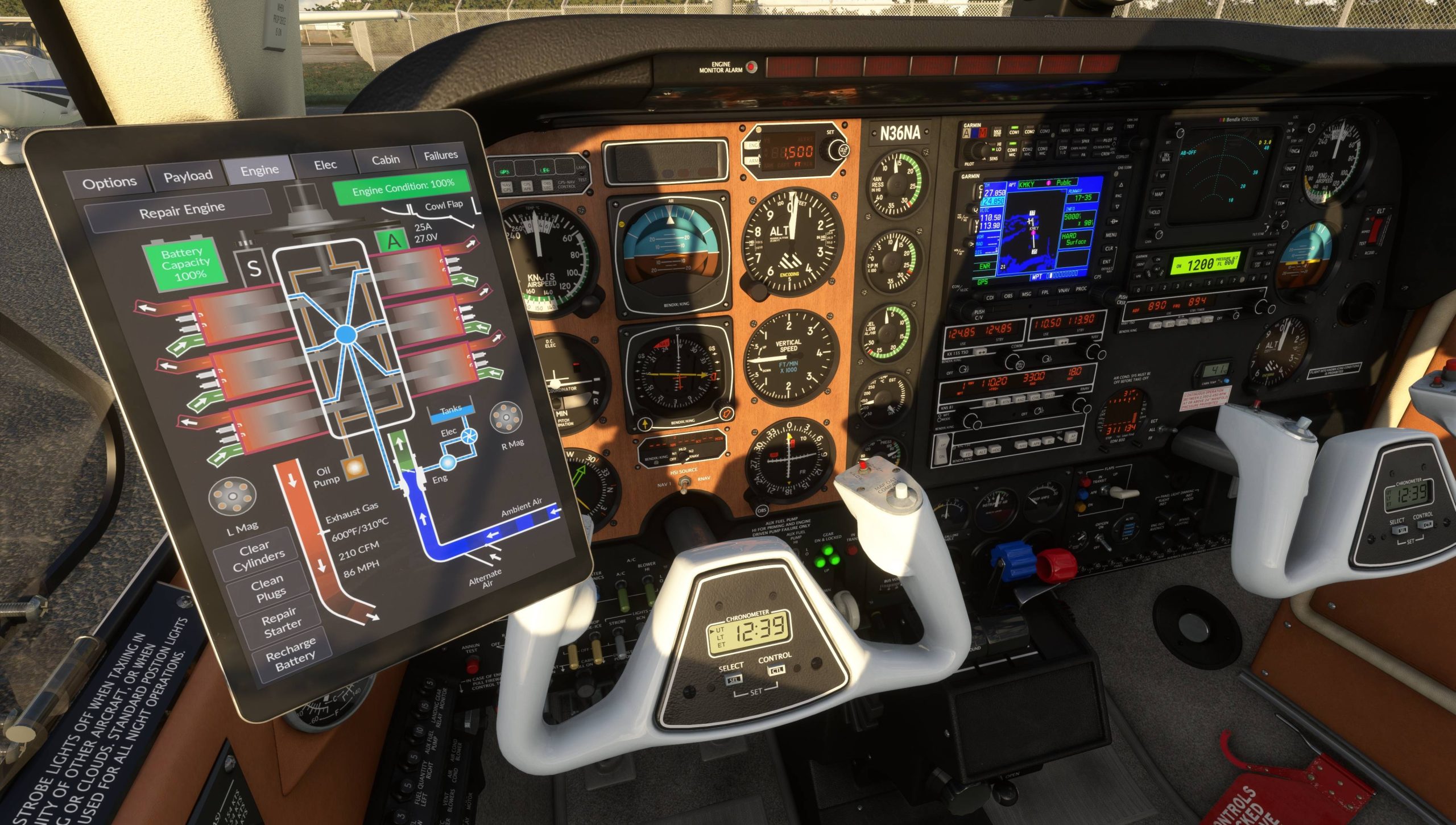 Ces deux avions sont dotés des dernières technologies de moteurs à pistons et à turbine de Black Square. Chaque cylindre du moteur est simulé, y compris la compression, l’encrassement des bougies d’allumage, l’inondation, etc. La simulation du moteur à turbine est tout aussi détaillée, avec des températures ITT précises, des démarrages à chaud, une plage bêta, etc.