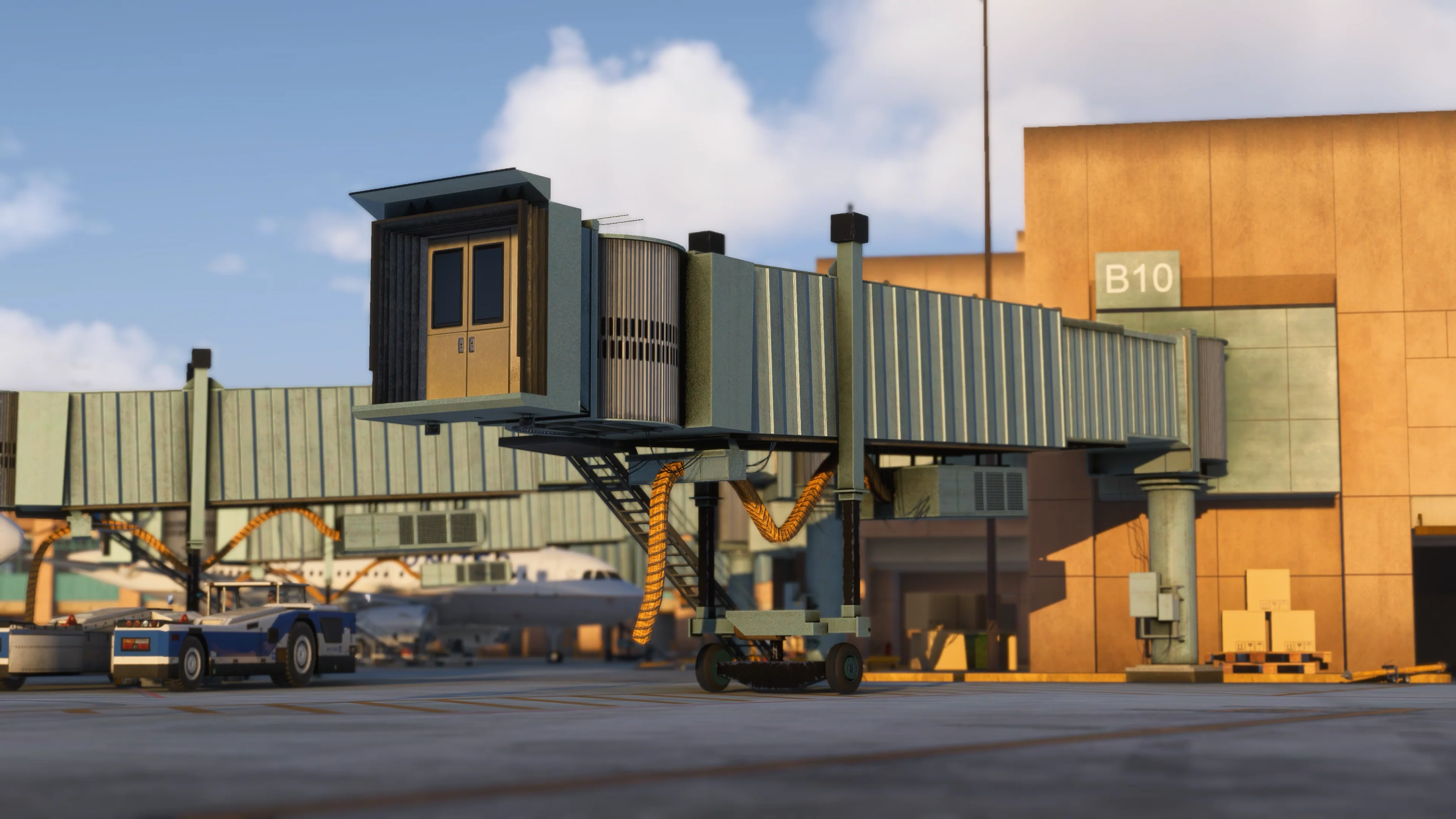 Dominicdesignteam a créé leur interprétation de l’aéroport d’Albuquerque à l’aide de textures PBR, accompagnées de marques de terrain réalistes à travers l’aéroport. Les développeurs ont également «minutieusement» une chaussée personnalisée artisanale avec beaucoup d’imperfections et de saleté visibles. L’éclairage dynamique a également été inclus, créant un paysage plus immersif et dynamique pour tenir compte de l’heure de la journée.