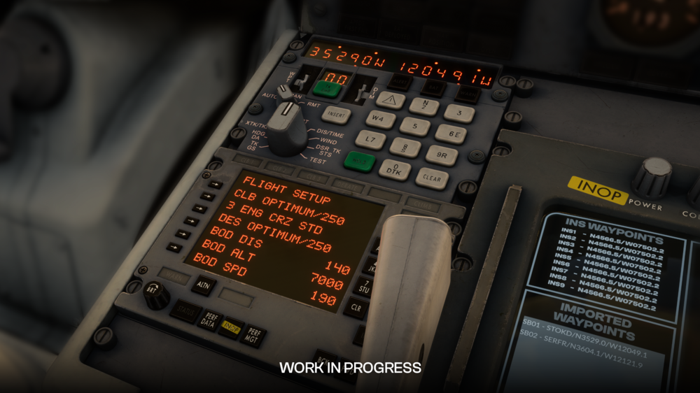 iniBuilds indique que le TriStar prendra en charge plusieurs philosophies de navigation, notamment les modes RADNAV, INS, GPS et hybride INS plus GPS. Plutôt que d’introduire des commandes fictives dans le cockpit, l’équipe utilisera le Paper Flight Bag pour définir la source de navigation, préservant ainsi l’authenticité du panneau AFCS d’origine. Lorsque le fonctionnement GPS uniquement est sélectionné, l’étiquette INS sur l’AFCS sera remplacée tout en conservant le flux de travail d’origine du cockpit.