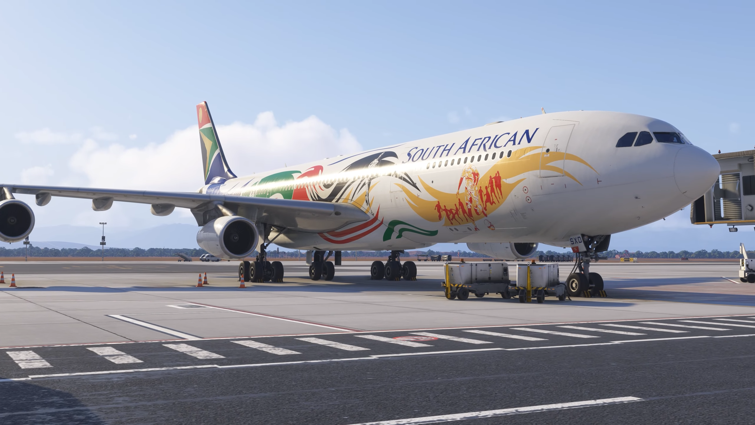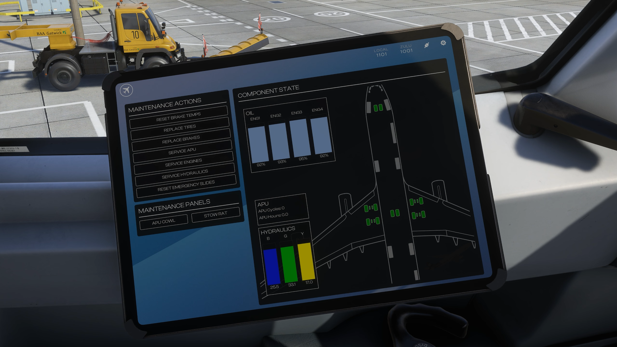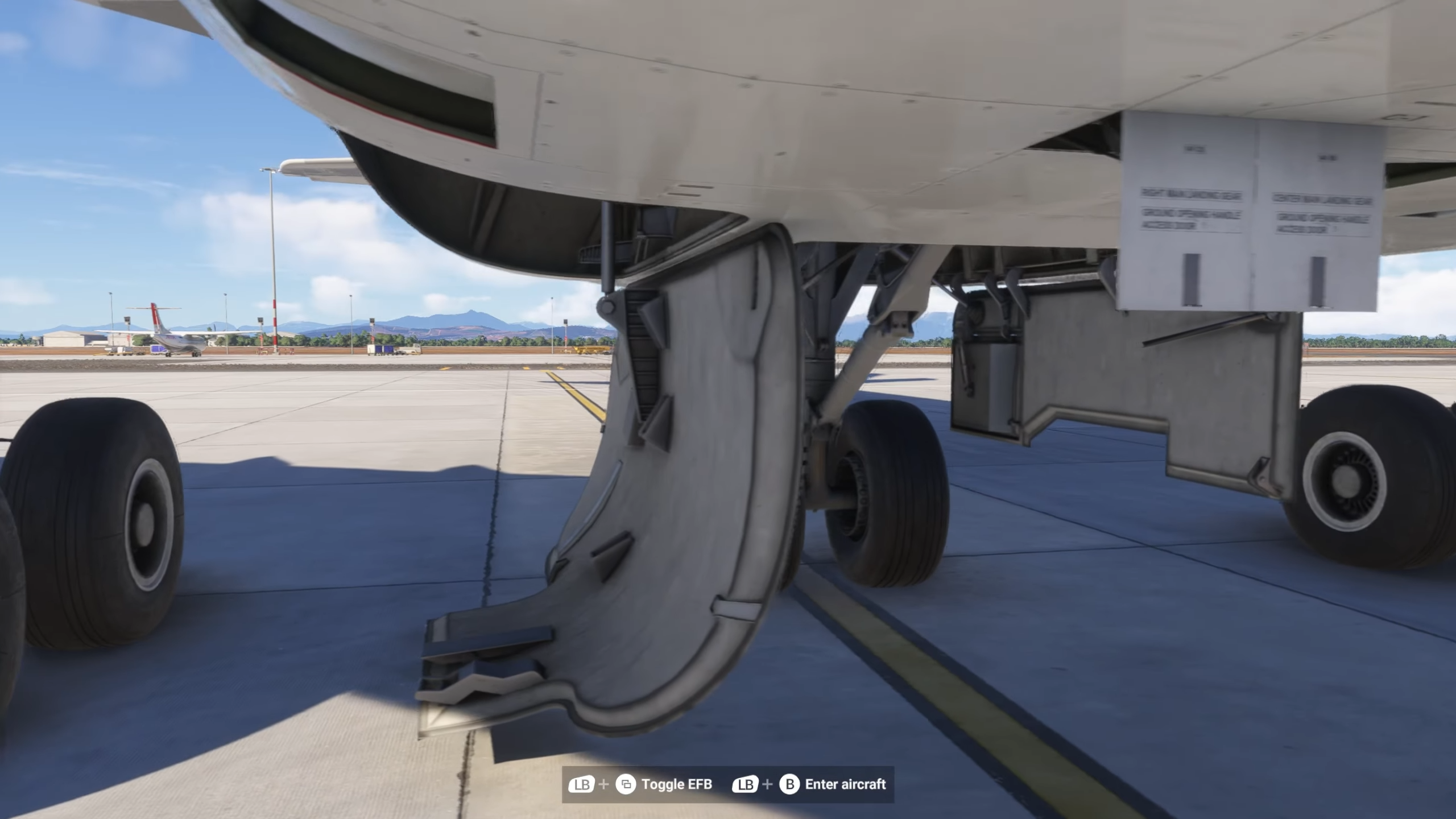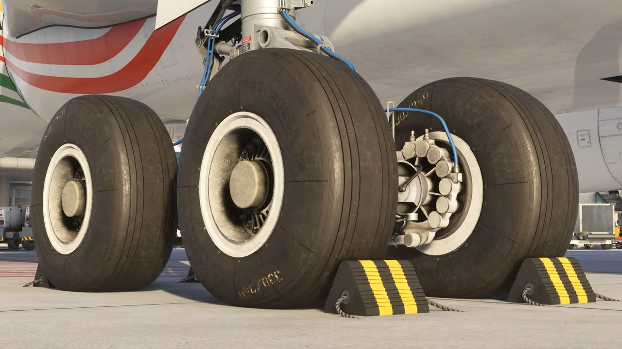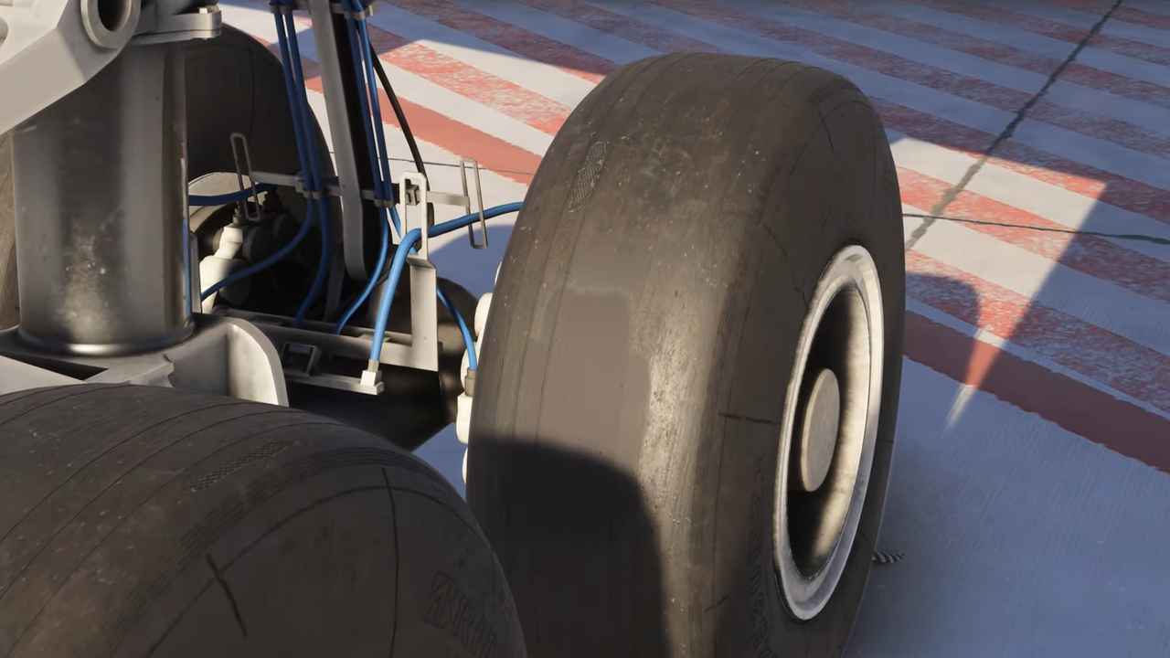 On a également montré quelques détails intéressants liés à l’usure et à l’entretien de l’avion. Le niveau d’usure et l’accumulation de saleté à l’extérieur de l’A340 peut être ajusté manuellement à l’aide de l’EFB de l’avion. Les pilotes faisant le promenade devront surveiller les usures excessives des pneus et des freins, qui est simulée. Ceux qui cherchent à jeter un coup d’œil à l’intérieur de la baie de vitesses peuvent abaisser les portes de vitesse à l’aide des leviers de maintenance sur le fuselage inférieur.