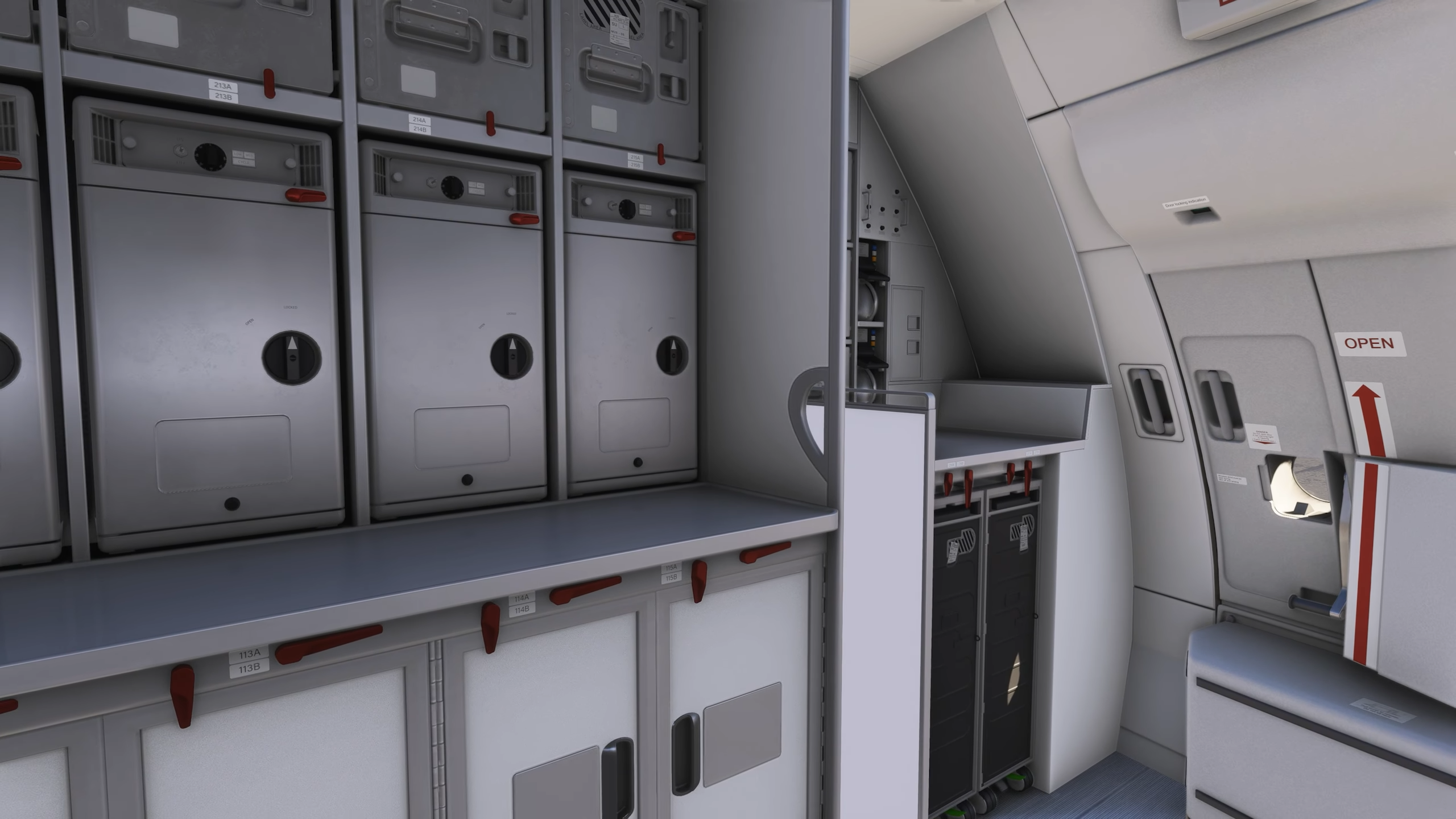 La cabine, comme l’extérieur, a été modélisée avec des détails atroces. Les éléments interactifs comprennent des portes et des rideaux, et tout, de la cuisine à chaque siège, a une texturation et une modélisation de haute qualité. L’ambiance sonore a également été ajustée pour cette zone afin qu’elle correspond aux sons typiques que vous entendriez en étant assis dans la cabine. Pour s’assurer que les performances ne sont pas principalement affectées par ce détail, le nouveau système LOD de MSFS 2024 abaisse dynamiquement les détails dans certaines parties de la cabine qui sont loin de l’utilisateur.