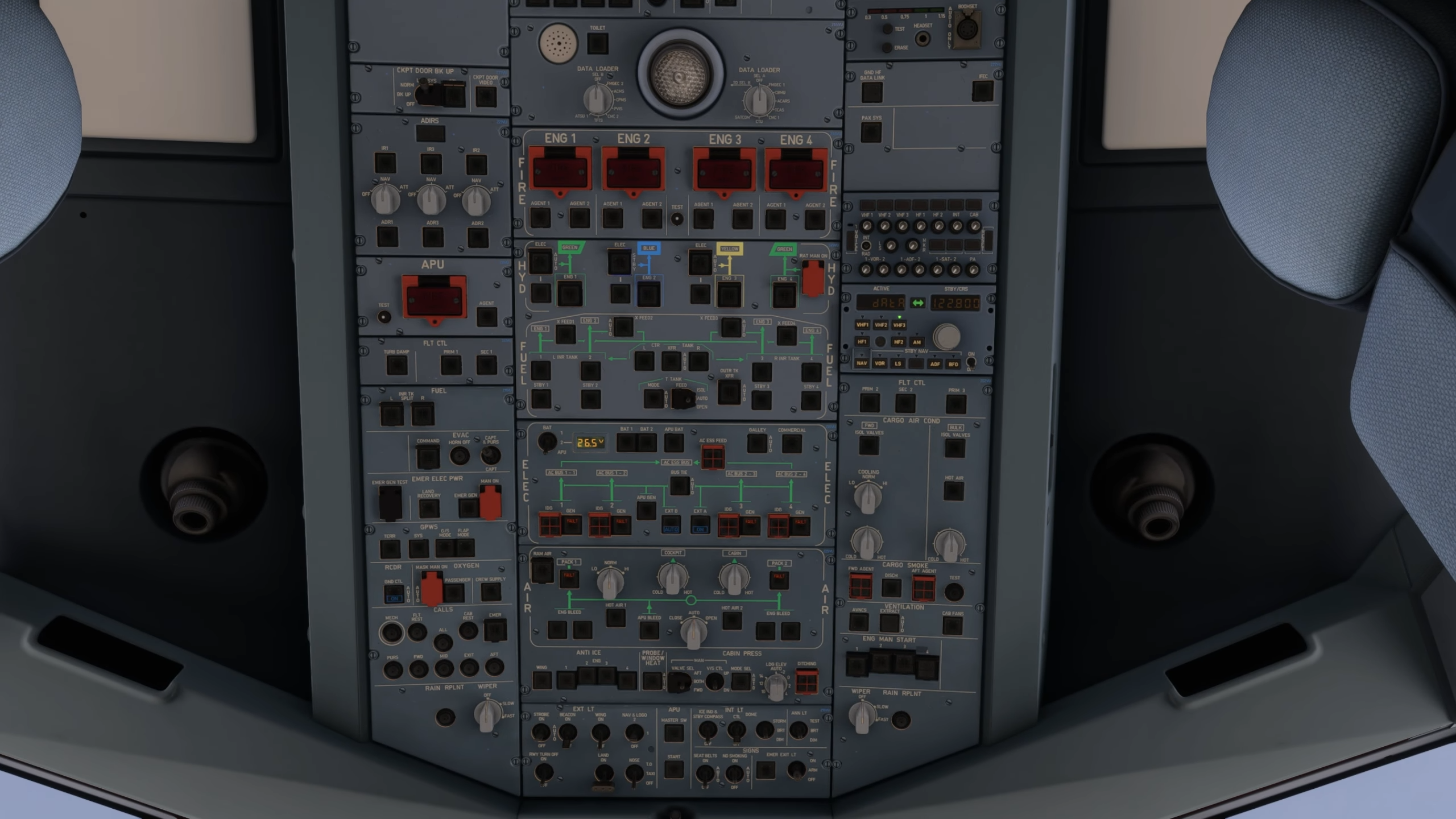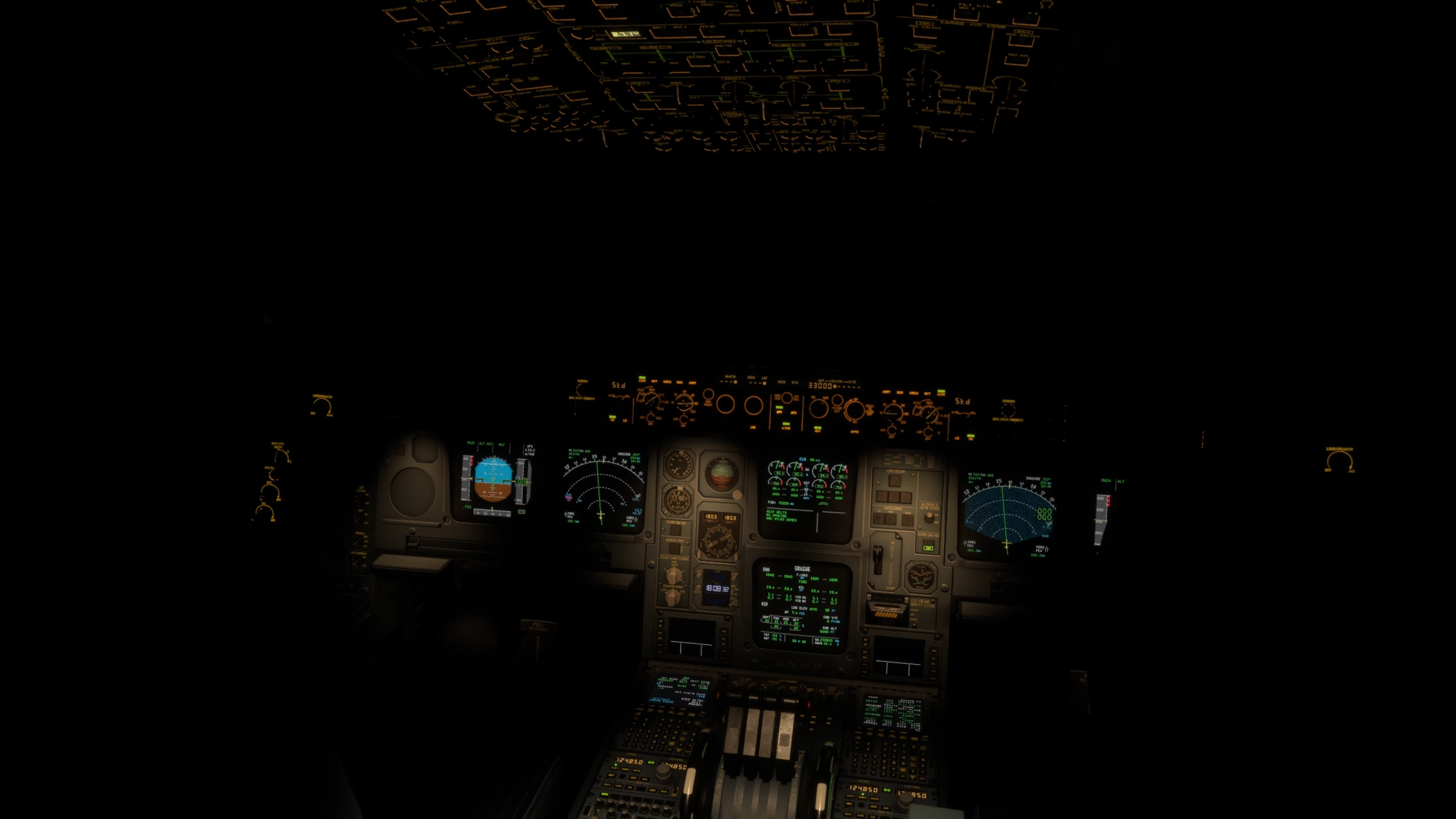 L’éclairage nocturne dans le poste de pilotage a été brièvement présenté, ainsi que quelques différences intéressantes entre les niveaux de luminosité EIS1 et EIS2. Les écrans CRT de l’EIS1 n’ont pas de rétro-éclairage, ce qui les rend plus faciles dans les yeux la nuit, tandis que le rétro-éclairage de l’EIS2 lave les couleurs de l’affichage et rend les écrans excessivement lumineux; Une différence réelle qui a été reproduite ici.