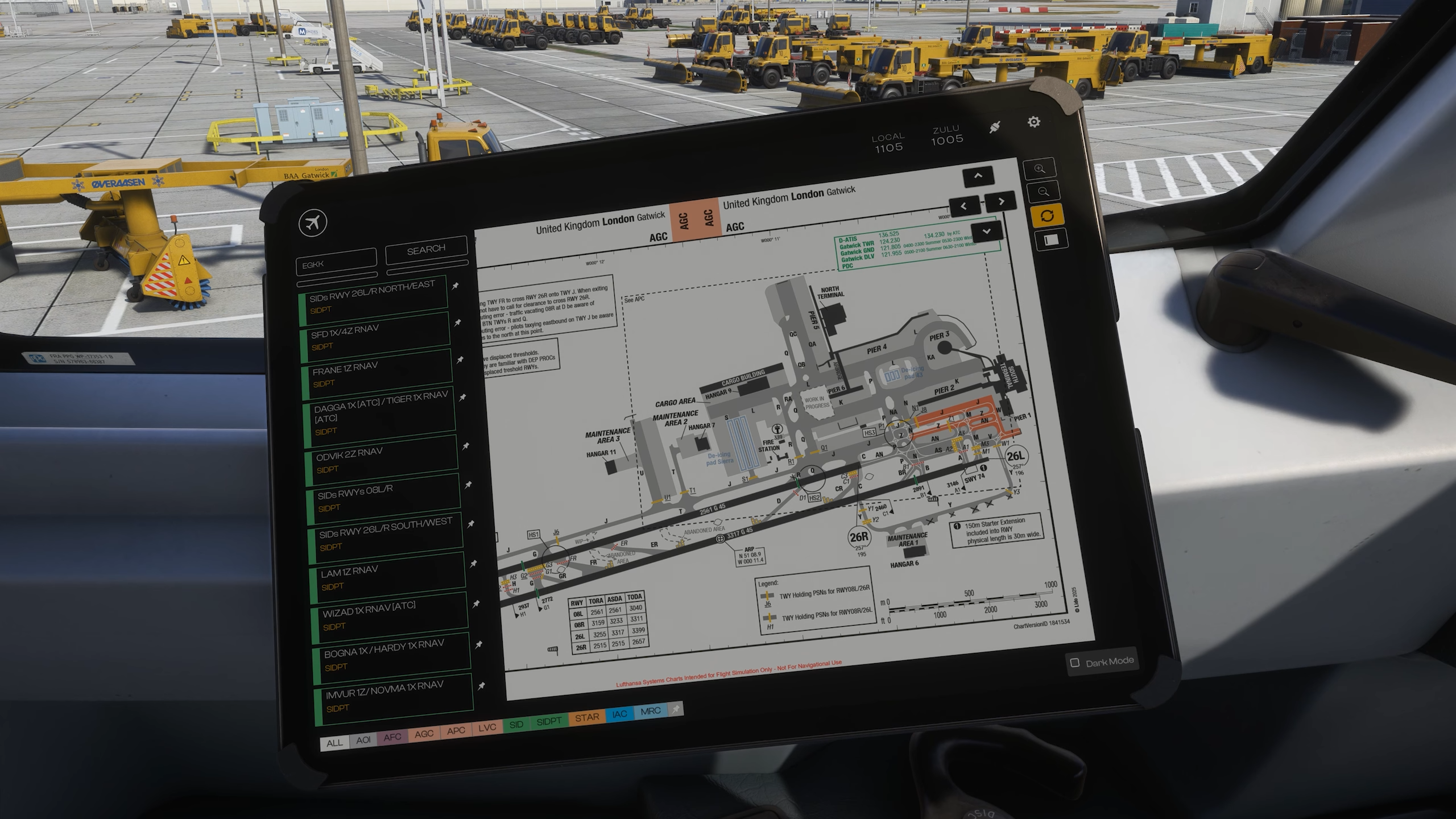 Il existe une application de maintenance où vous pouvez garder une trace de l’état de divers composants d’avions et les servir. Une application Autosave enregistre en permanence vos données de vol afin que vous puissiez revenir à un vol dans le cas d’un crash SIM. Enfin, l’application des graphiques propose une prise en charge des deux graphiques de navigraphe ainsi que des graphiques Lido de MSFS 2024.