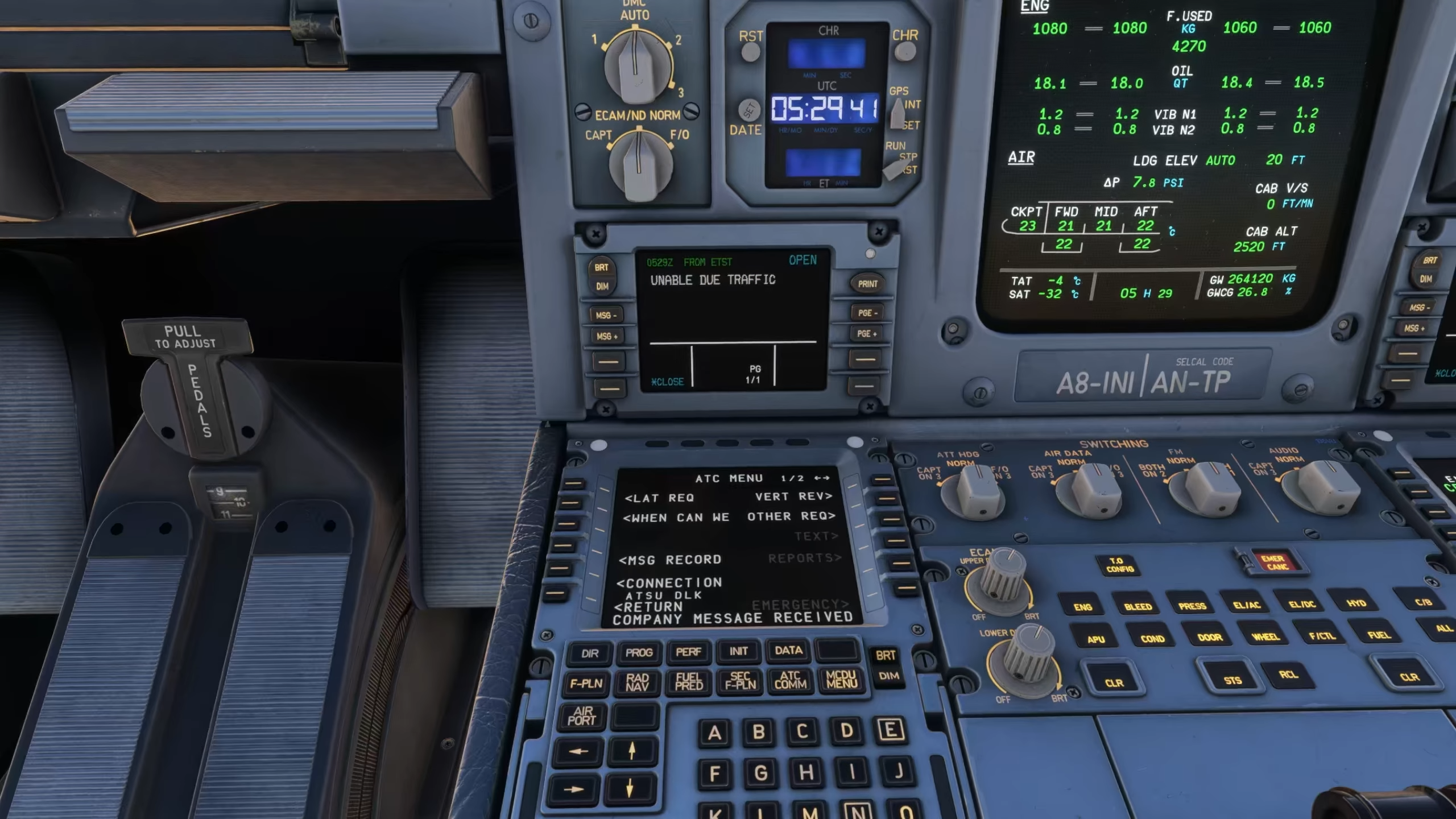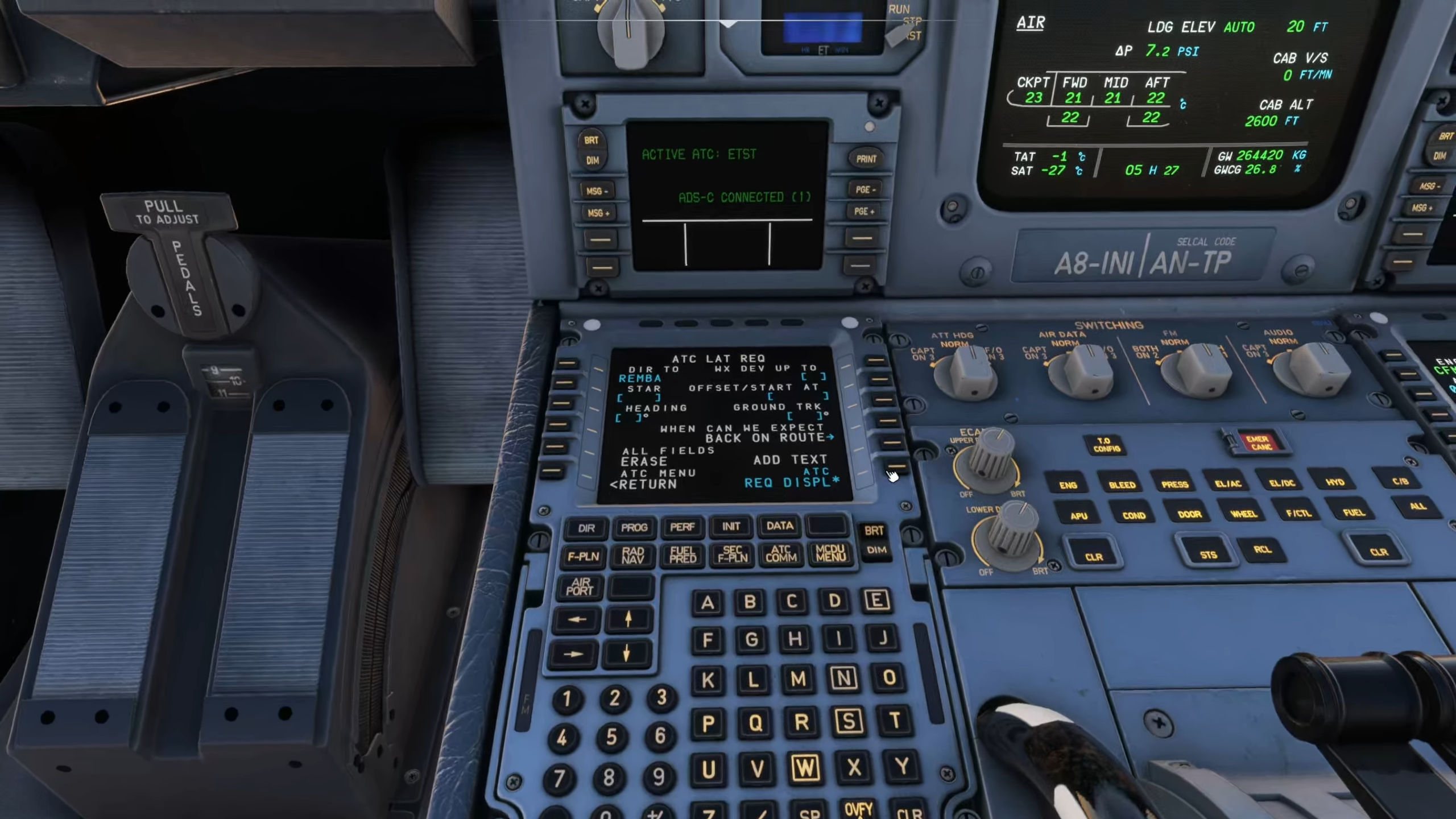 Les inibuilds A340 comporteront de nombreux systèmes avancés; Outre le FMC attendu, le radar de terrain et d’autres équipements typiques, l’avion sera également soutenu pour les échecs, les ACAR, le CPDLC et un ancien instrument d’assistance au décollage appelé indicateur para-visuel (PVI). Le CPDLC a été démontré sur la vidéo en demandant un waypoint direct, qui a été refusé par le contrôleur ATC. Il n’est pas clair dans la vidéo ce que le service ATC a été utilisé pour la démonstration; Cependant, sur la base des paramètres EFB, il existe un support pour Hoppie, SayIntentions.ai et BeyondATC CPDLC.