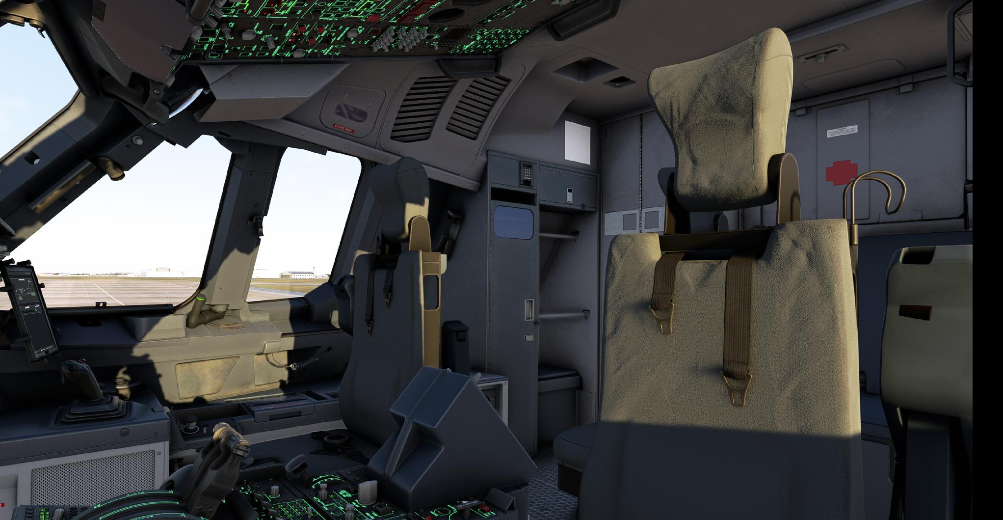 Du point de vue de la dynamique de vol, l’A400M offre une expérience nettement différente de celle des avions de ligne commerciaux conventionnels. La combinaison de quatre turbopropulseurs, d’une configuration à ailes hautes et d’une grande cellule introduit des caractéristiques de maniabilité distinctes, en particulier lors des opérations de décollage, de montée et à basse vitesse. Ces éléments contribuent à un modèle de vol qui devrait plaire aux utilisateurs intéressés par les avions plus lourds et les procédures non standard.