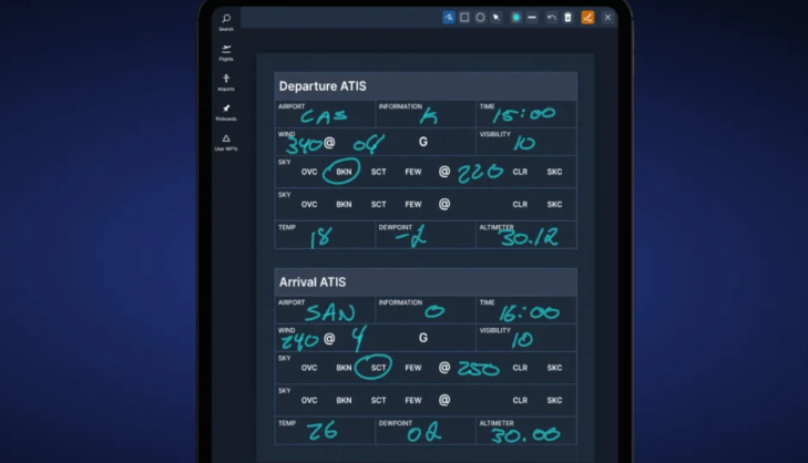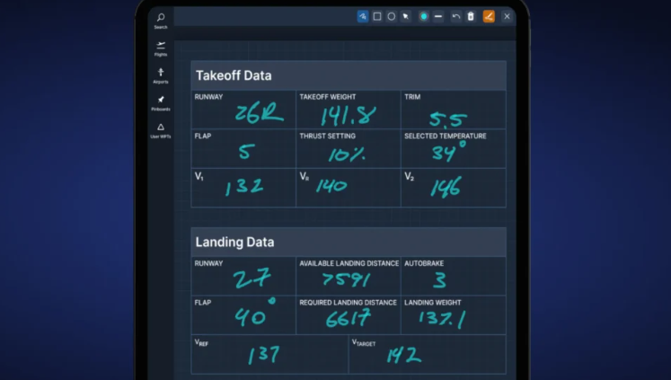 Les utilisateurs peuvent choisir entre du papier vierge, du papier ligné, du papier à carreaux (graphique) et un bloc-notes convivial et dactylographié avec une taille de texte réglable. La saisie manuscrite est prise en charge via le stylet, la souris ou le toucher. Au-delà des notes de base, Scratchpads comprend également des modèles structurés calqués sur les flux de travail réels du cockpit. Ceux-ci incluent :
