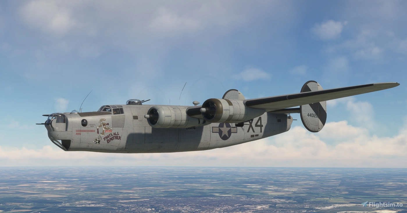 Le B-24 Liberator était avec plus de 18 000 unités l’un des bombardiers américains les plus produits de la Seconde Guerre mondiale. L’avion a été introduit en 1942 et a présenté une équipe de dix, dont pilote, copilote, bombardier, navigateur, opérateur radio, ingénieur de vol, artilleur de tourelle de balle, tireur de queue et deux artilleurs de taille. Le B-24 a atteint une vitesse de croisière de 187 nœuds, un plafond de service de 28 000 pieds et une portée maximale de 2 850 miles. L’avion a été propulsé par quatre moteurs Pratt & Whitney Twin Wasp R1830-65 produisant 1 200 chevaux chacun.