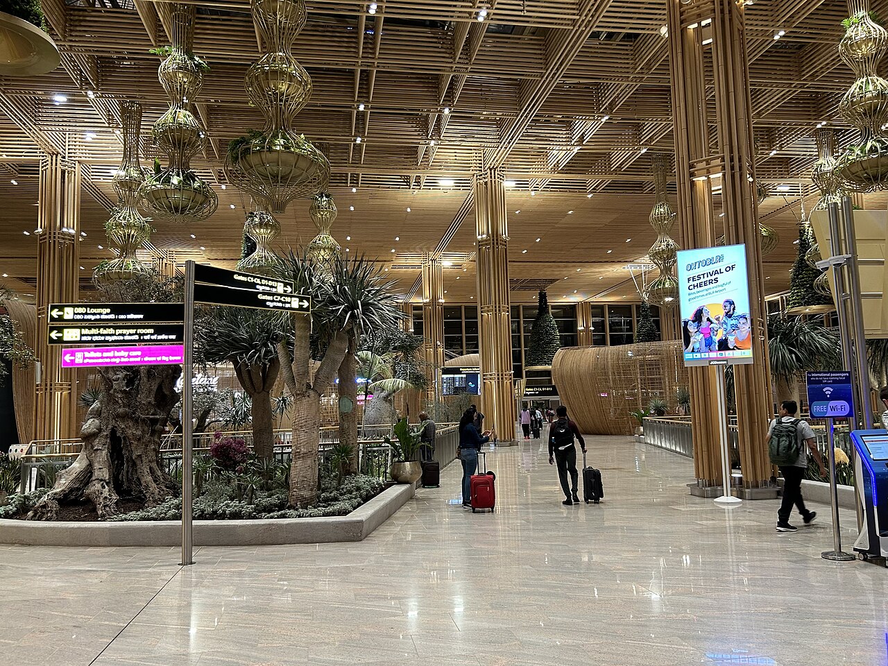 Kempegowda International est l’aéroport le troisième plus fréquent de l’Inde et la principale passerelle internationale de Bengaluru. Situé à environ 40 kilomètres au nord du centre-ville, l’aéroport comprend deux pistes parallèles et deux terminaux de passagers. Terminal 2 est particulièrement connu pour sa conception écologique, intégrant des matériaux naturels, des jardins en suspension et des espaces ouverts remplis de lumière qui s’inspirent de l’identité de Bengaluru en tant que «Garden City» de l’Inde. L’architecture combine des structures en acier et en verre modernes avec une utilisation approfondie du bambou et de la pierre locale, visant à refléter le climat et la végétation de la région.