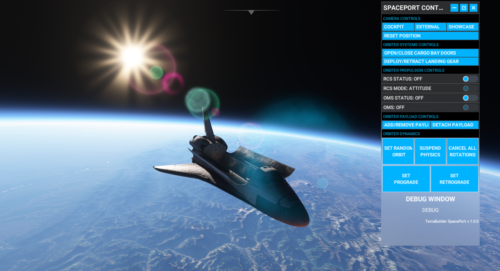 Initialement développé comme un module complémentaire pour Prepar3D (P3D), SpacePort est un module complémentaire qui amène les vols spatiaux à un simulateur de vol. Y compris les décors, les objets, la physique, les animations personnalisées et bien plus encore… Tout cela est possible en utilisant leur modèle physique personnalisé pour les vols spatiaux.